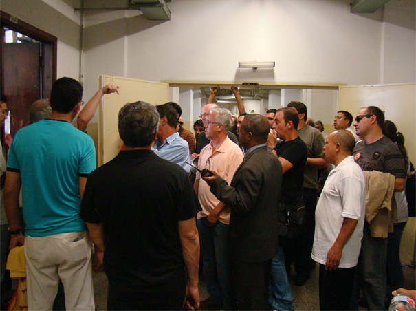 Com tal atitude ninguém entrava e ninguém saía do prédio, aumentando a revolta dos servidores que decidiram pela ocupação do saguão que durou aproximadamente 6 horas. Em uma demonstração de força e unidade, a categoria permaneceu, incansavelmente, durante todo esse período na luta, expondo sua insatisfação através de falas, gritos e muito barulho com o panelaço.