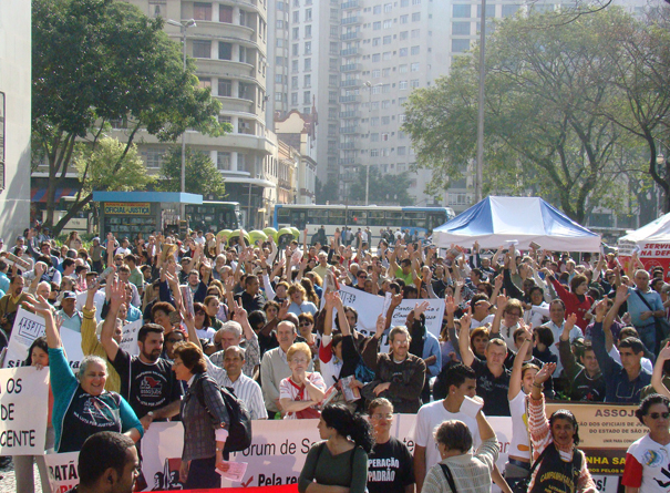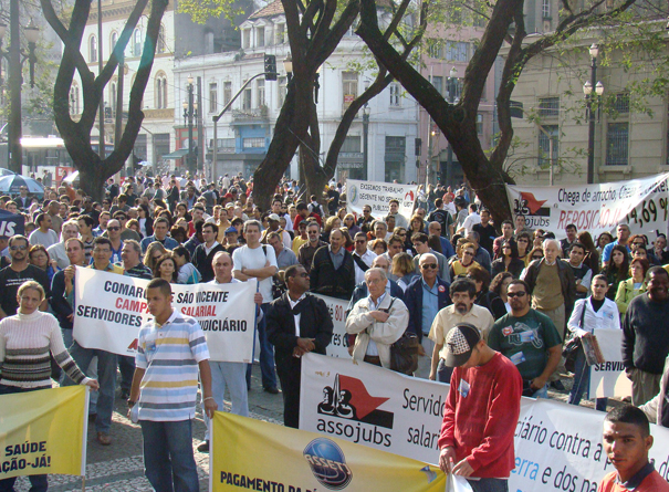 A presença dos cerca de mil servidores já é um indício do fortalecimento da luta. É esse o entendimento do oficial Mário Ricardo Silveira, da Comarca de São Vicente. Em seu discurso durante a Assembleia, lembrou aos colegas que compareceram à Praça João Mendes que outros movimentos históricos começaram com uma participação muito menor. A conscientização do servidor é a mola propulsora para o crescimento da mobilização: “Não se consegue reverter nada sem convicção e união. A partir do momento que o companheiro tem essa convicção de que seu engajamento é essencial para ver seus direitos atendidos, a luta vai adiante. Em pé se consegue qualquer coisa, sentado, nada”.
