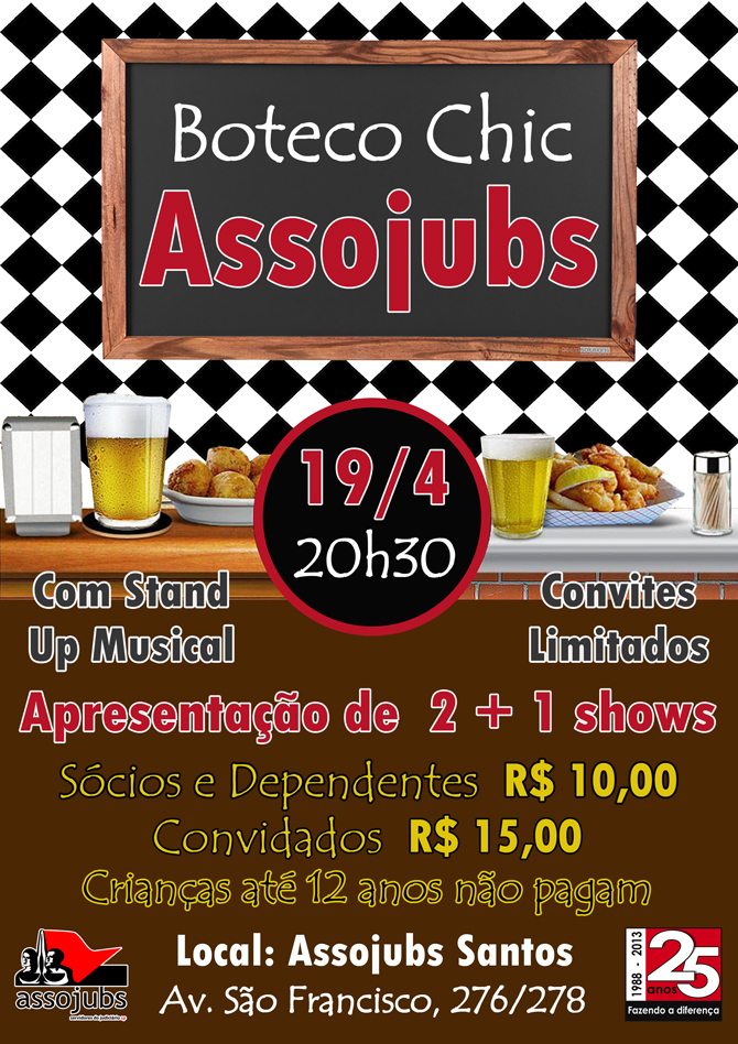 Boteco Chic Assojubs: Com apresentação de 2 + 1 Shows