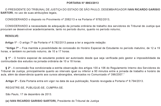 TJ publica Portaria sobre o Horário Especial de Estudante no período matutino