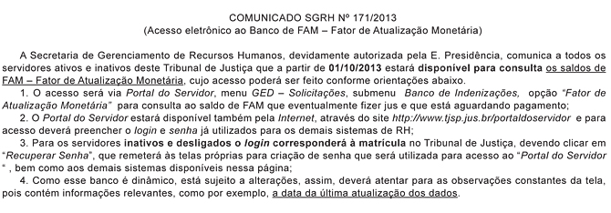 Saiba como ter acesso ao Banco de Fam - Fator de Atualização Monetária