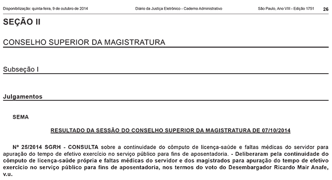 Órgão Especial delibera a continuidade da contagem de tempo para aposentadoria quando o servidor estiver afastado por licença saúde ou faltas médicas