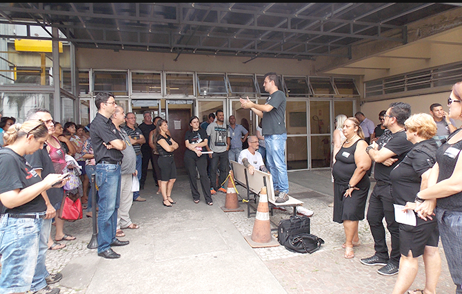 Na tarde desta quarta-feira, 13 de abril, em uma ação pela Campanha Salarial 2016, os servidores atenderam à convocação para trabalharem vestidos com peças na cor preta e promoverem discussões em suas unidades cartorárias e prédios. Na Baixada Santista, a mobilização teve início com a Comarca de Praia Grande.