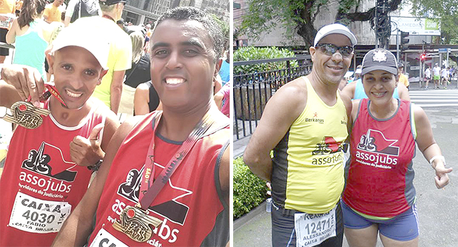 Atletas da Equipe Assojubs em diferentes momentos da 91ª Corrida Internacional de São Silvestre