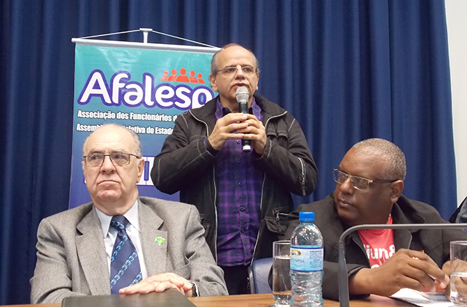 As terceirizações também foram citadas por Gonçalves, uma prática que vem ocorrendo em todas as esferas do serviço público, ocasionando rebaixamento de salários e precarização dos atendimentos. E encerrou propondo: "Que os representantes percorram as Câmaras de seus municípios e consigam moções de apoio, bem como dos parlamentares da Casa".