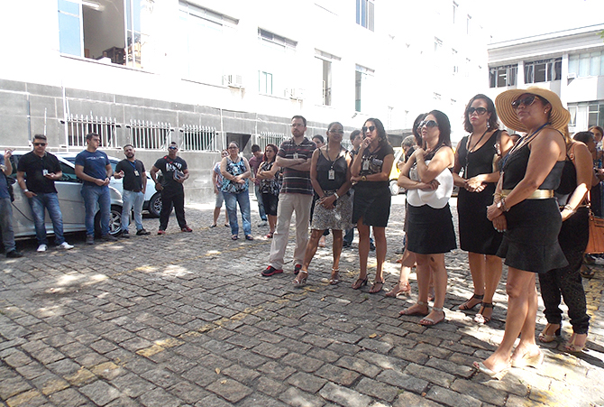 Devido à manutenção do impedimento dos servidores de adentrarem ao Palácio da Justiça, prédio central, pelo acesso do estacionamento/garagem por parte da Diretoria do Fórum, na manhã desta quarta-feira, 20 de abril, os servidores da Comarca de Santos promoveram um protesto contra a decisão dos juízes em detrimento aos trabalhadores.