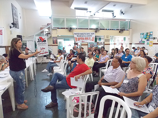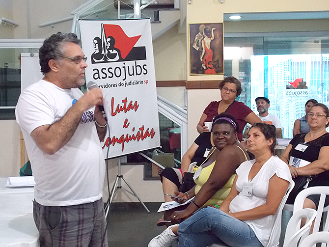 Em 20 de fevereiro trabalhadores do Judiciário Estadual, ativos e aposentados, estiveram reunidos na Assojubs Santos para dar início à Campanha Salarial 2016. O primeiro passo para o fortalecimento dessa luta aconteceu com o VII Encontro Estadual dos Servidores do Judiciário de São Paulo, promovido na sede santista da associação. O evento teve início com explanações acerca das conjunturas econômica, política e sindical vividas no cotidiano e foi encerrado com a pré-pauta de reivindicações da categoria, a ser apresentada na Assembleia Estadual, com data marcada para 11 de março, a partir das 13 horas, na Praça João Mendes,região central da Capital.