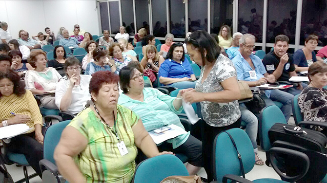 Rosângela dos Santos, membro do Núcleo de Oficiais de Justiça da Assojubs, diretora do Sintrajus e integrante da Comissão Regional da CCM Iamspe, esteve presente ao debate e expôs a situação caótica do Vale do Ribeira, cujos conveniados do Instituto viajam 350 km até o Ceama (Centro de Assistência Médico-Ambulatorial) mais próximo, localizado em Santos.