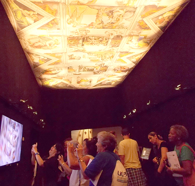 Entre as reproduções dispostas no Espaço Cultural Porto Seguro, obras ligadas à arquitetura, como os afrescos A Última Ceia (de Leonardo da Vinci) e a Capela Sistina, além das esculturas Pietà e Davi (de Michelangelo).