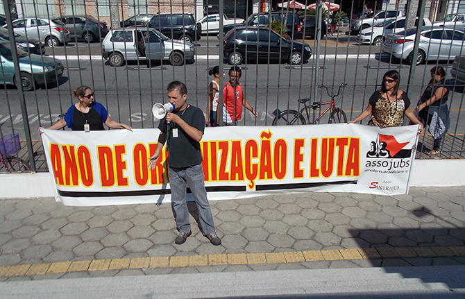 Michel Iorio Gonçalves, presidente da Assojubs e coordenador geral do Sintrajus, reforçou a importância da união da categoria nas comarcas, uma forma de demonstrar insatisfação dos servidores ao Tribunal de Justiça, que segue com suas negativas para as demandas dos trabalhadores, como os percentuais não pagos de defasagens salariais - reposições de 4,77% relativo à data-base de 2010 (março a novembro),1,5%, data base de 2011 (março a agosto), e 1,18, data-base de 2015 (março a outubro) -, a avaliação (Progressão) dos servidores e ainda não recebida por eles e a majoração do auxílio saúde para R$ 500,00, item da pauta de reivindicações.