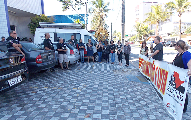 Às 14 horas o ato aconteceu em Mongaguá, Comarca cujas condições de trabalho são precárias, agravadas pela total falta de segurança no Fórum. Tal situação ocasionou um recente incidente, deixando os trabalhadores em pânico: uma pessoa do público, dentro do prédio, tentou atear fogo em si mesma.